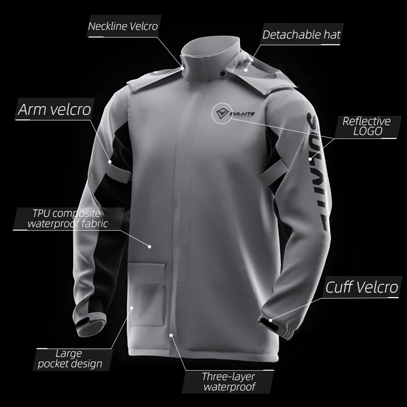 1,Featured Raincoat: This raincoat suit is made of waterproof fabric, which is windproof and rainstorm, no leakage, detachable hat, flexible and durable, allowing you to enjoy riding; It is light, breathable and comfortable, allowing you to ride comfortably; It adopts anti-wrinkle and wear-resistant. The fabric is wrinkle-resistant and durable; It is also equipped with a hidden shoe cover, which can be easily retracted in sunny and rainy days. It is specially designed with reflective design. Even if it is rainy, you can be a cool version of yourself.